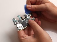 • Remove the small metal bracket covering the front facing camera and sensor cable. Then remove the front camera and sensor cable.