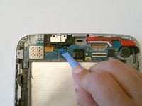 Using the plastic opening tool, start where the S-pen was located and carefully pry up the corner.