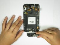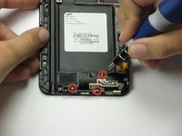 Use a Phillips #00 screwdriver to remove the three 3mm screws on the black rectangular bracket located towards the bottom of the phone.
