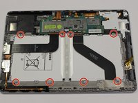 • Remove the eight 3mm Phillips #00 screws surrounding the battery.