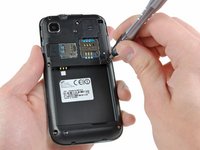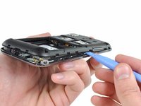 With the assistance of our good friend, the plastic opening tool, we can unclip the plastic outer framework of the Galaxy S 4G.