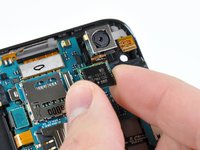An interconnect board is adhered to the rear EMI shield and hosts the SIM card and microSD card slots. We popped them off as one piece to get a look at the ICs that make this thing tick.
