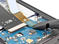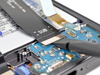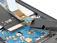 Insert the flat end of a spudger under the secondary interconnect cable press connector labeled "SUB" and pry up to disconnect it.