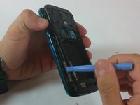 Pry the rear case off with a plastic opening tool starting at the divot to the left of the rear-facing camera, near the power button.