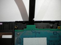 Using the flat edge of the spudger, pry and lift up the motherboard.