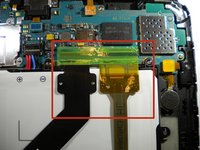 Carefully pull out the yellow flexible ribbon cable to disconnect it from the motherboard.