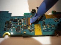 Using the flat edge of the spudger, pry and lift up the motherboard.