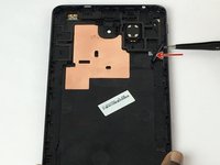 Using the plastic opening tool, starting at any corner on the tablet, insert the tool between the back panel and the front panel.