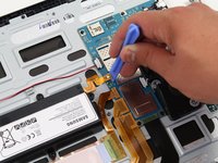 Stick the pointy end of the spudger into the circular opening of the leftmost metallic latch.
