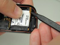 Use the pointed side of the spudger to remove the small, orange battery cable.