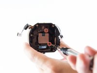 Within gold metal half of the case, unscrew the Phillips #00 0.75 mm screw located on the metal plate using a PH00 screwdriver.