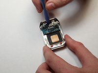 Gently work the plastic opening tool under the top edge of the watch’s back cover.