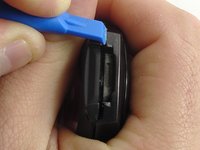 Insert a plastic opening tool between the top and bottom portions of the case, and gently pry off the back.