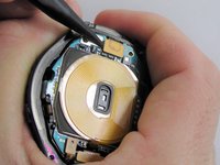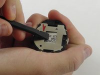 Flip the battery casing over and using a spudger, push on the battery to free it from the casing.