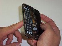 Find a gap on the top side of the phone and pry apart the phone case using the plastic opening tool . Use moderate pressure to slowly maneuver around until the case is pryed apart.