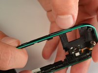 Unhook the volume rocker tether with a pair of tweezers or the pointed end of a spudger.