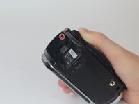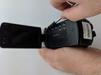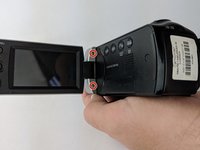 Locate and remove the two 3.5mm Phillips #00 screws from the side of the camcorder.