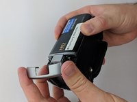 Slide the battery towards the release tab and then pull the battery away from the camcorder.
