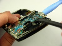 Insert the Plastic Opening Tool under the upper left corner of the Motherboard to help reveal the ribbon cable.