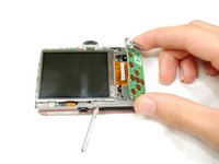 Carefully squeeze the top right corner of the camera and pry off the external cover.