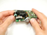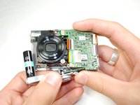 Carefully hold up the circuit board, while it's still connected to the camera.