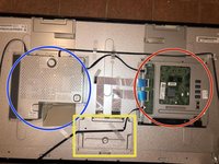 Pulling the adhesive strip off and sliding the power board holder of the lip of the monitor, allows its removal.