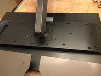 The stand is fastened to the monitor by two (2) Philips head screws. Remove those