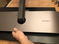 now pull the stand back to release the two metal tabs to remove the stand.