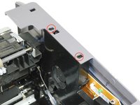 Using a Phillips #2 screwdriver, remove the two 1" screws on the front face of the printer.