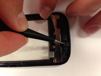 Once under the LCD, slide the tweezers around the three silver edges until the entire display lifts from the grey plastic.