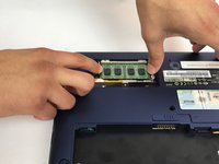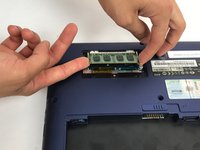 Pull the 2 latches holding the RAM in, away from the RAM stick, and the RAM will pop up.