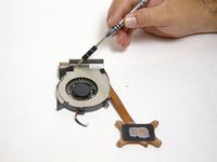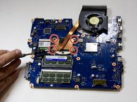 Remove the three 5mm Phillips head screws on the motherboard and the one 5mm Phillips head screw on the fan.
