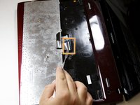 Open the computer and locate the three keyboard release tabs. Once located, use a flat metal device to pry the tabs open.