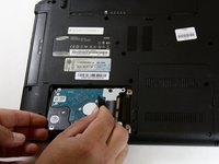 Grasp the tab and pull it to the left until the hard drive releases its connection and is able to be lifted free.