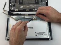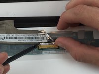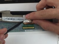 Using the black spudger tool and your fingertip, gently push on the ends of the ribbon cable to pop it out of the socket.