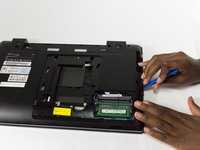 Insert the plastic opening tool between the seam of the back panel and the laptop.