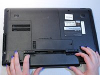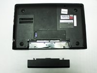 While holding the left and right lock switches in the unlock position, pull the battery away from the computer.