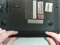 While holding the left and right lock switches in the unlock position, pull the battery away from the computer.
