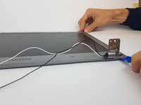 Using the plastic opening tool, pry open the plastic housing that holds the display.