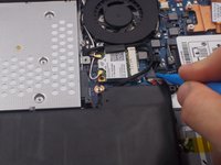 Using the plastic opening tool, start in the upper-left hand corner of the laptop and pry horizontally to the upper right-hand corner.