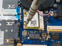 Using the Phillips#00, remove the single 3.5mm screw from the wireless card.