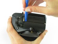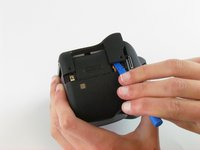 Use the Phillips #00 screwdriver to remove one 3.8 mm screw from the bottom of the hand grip, below the battery compartmen.