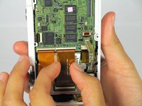 • Slowly and carefully wiggle the ribbon out of the ZIF connection (Do this by holding the back of the ribbon).