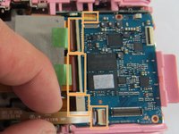 Move towards the main frame of the camera and locate the three 1mm Y0 screws holding down the motherboard.