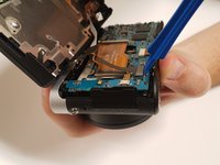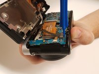 Use the plastic opening tool in a downward motion around each side of the camera to pry the casing open.