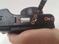 Unscrew five more 4 mm Phillips #000 screws that are located at the bottom of the camera with the screwdriver.
