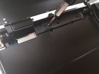 Open the screen exposing the hinge cover and place the plastic opening tool inside.
