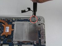 Use a spudger to pry the battery connecting cable from the laptop and remove the battery.