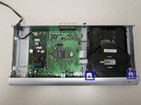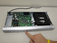 • With the back of the DVD player facing you, remove the three 1 cm black screws on the right, left, and top sides using a Phillips #1 screwdriver.