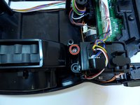 Unscrew the two silver 1.5 cm screws on the left and right side of the battery compartment.